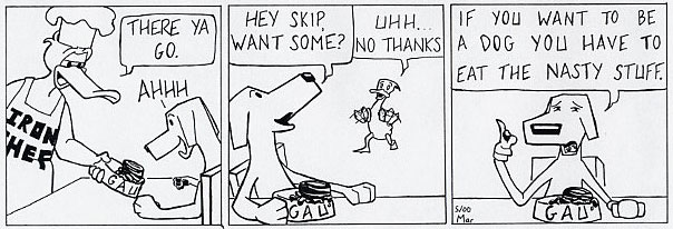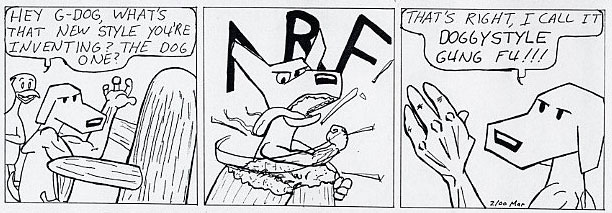 | ANIMAL TIME is a comic strip that first ran in the University of Southern California's daily newspaper, the Daily Trojan. It is the first "real" comic strip series I have ever done and working to put these I guess you can say experimental test pieces out has been a great learning experience for me. My drawings and gags were really crude in the beginning but as I kept drawing more and started caring about neatness, the process really helped me hone my comic strip craft. The idea behind Animal Time and all the characters are from my early teenage daydreams of cartoon craziness. Not all my strips were published in the Daily Trojan so some of these nobody's seen. | |||||||||||||||||||||||||||||||||||||||||