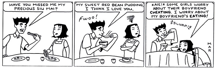 | Five Star Banquet All 52 Bryan and Anita strips are presented in the book. Available at comixpress.com. |