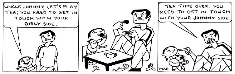 | Five Star Banquet All 52 Johnny "Dai" Goh strips are presented in the book. Available at comixpress.com. |