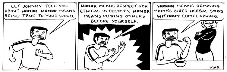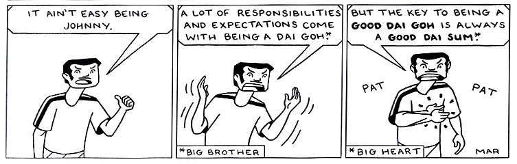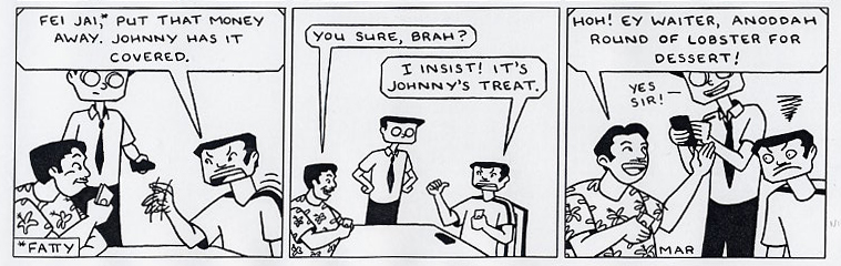 | Five Star Banquet All 52 Johnny "Dai" Goh strips are presented in the book. Available at comixpress.com. |